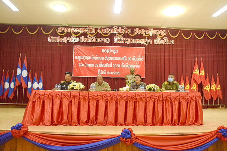 ກອງປະຊຸມສະຫຼຸບວຽກງານປ້ອງກັນຊາດ-ປ້ອງກັນຄວາມສະຫງົບ 9 ເດືອນ ແລະວາງທິດທາງແຜນການ 3 ເດືອນທ້າຍປີຂອງເມືອງສາ ລະວັນໄດ້ຈັດຂຶ້ນໃນວັນທີ 16 ຕຸລາ 2020 ທີ່ສະໂມສອນຂອງເມືອງສາລະວັນໃຫ້ກຽດຮ່ວມເປັນປະທານໂດຍທ່ານ ບົວທອງ ຄຸນຍອດປັນຍາ