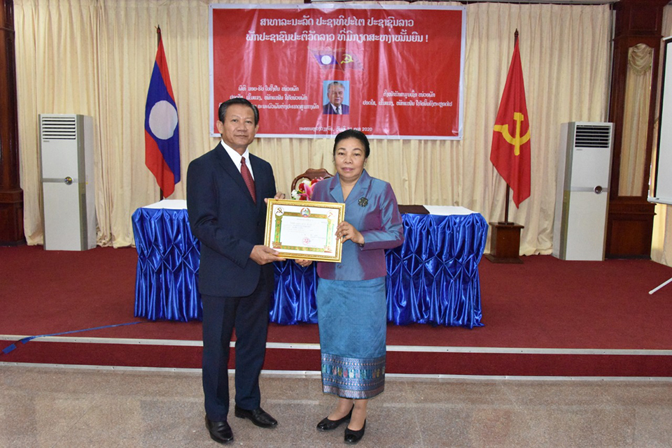 ໃນວັນທີ 21 ຕຸລາ 2020, ຄະນະພົວພັນຕ່າງປະເທດສູນກາງພັກໄດ້ຈັດພິທີມອບໃບຢັ້ງຢືນໜ່ວຍພັກປອດໃສ, ເຂັ້ມແຂງ,ໜັກແໜ້ນໃຫ້ແກ່ໜ່ວຍພັກກົມເອີຣົບ-ອາເມລິກາໃຫ້ກຽດມອບໂດຍສະຫາຍ ນາງ ສູນທອນ ໄຊຍະຈັກຫົວໜ້າຄະນະພົວພັນຕ່າງປະເທດສູນກາງພັກ,