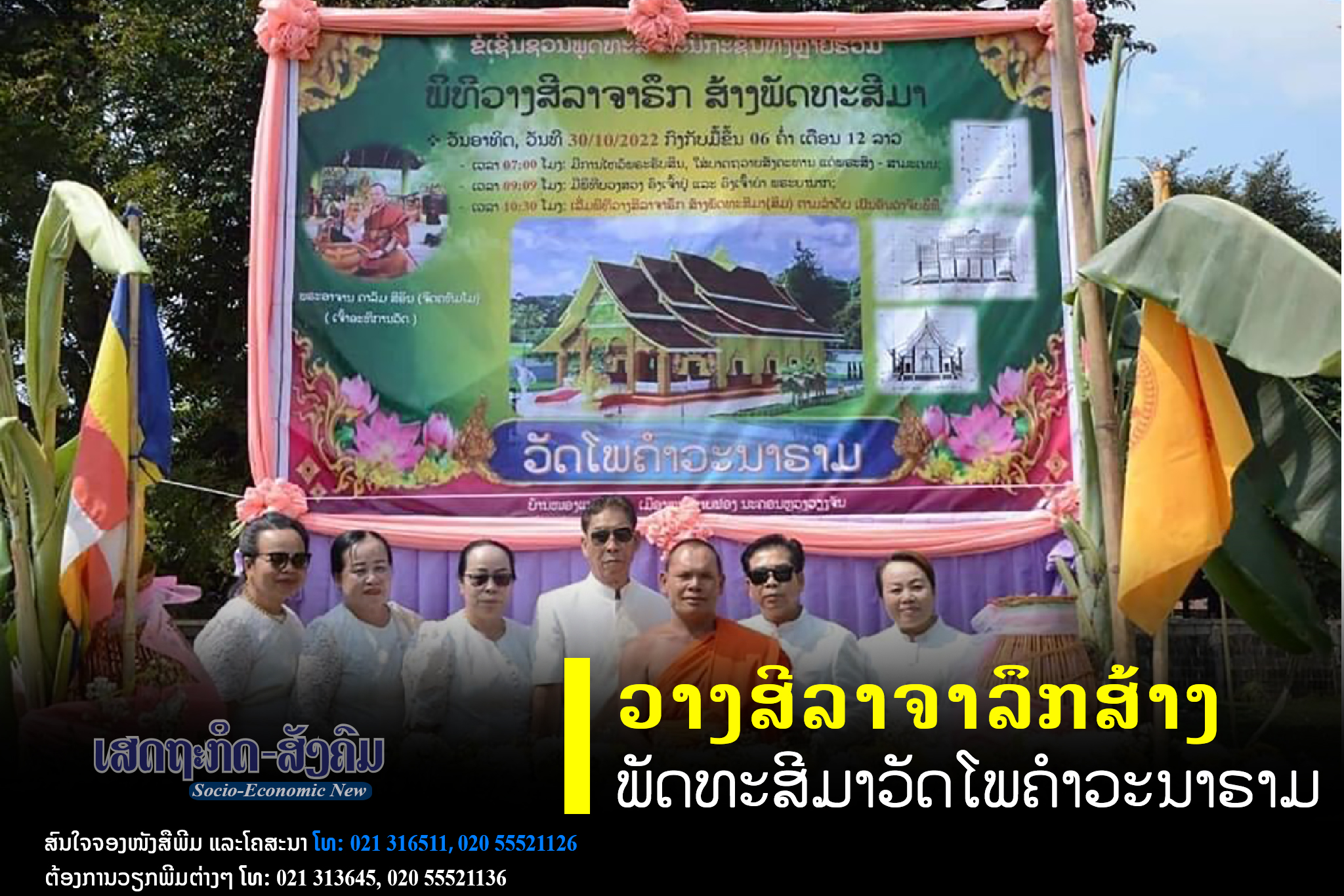 ພິທີວາງສີລາຈາລຶກສ້າງພັດທະສີມາ (ສີມ) ວັດໂພຄໍາວະນາຣາມບ້ານໜອງແປນເໜືອ ເມືອງຫາດຊາຍຟອງ ນະຄອນຫຼວງວຽງຈັນ ຈັດຂຶ້ນວັນທີ 30 ຕຸລາ 2022 ໂດຍເປັນປະທານຂອງ ພຣະອາຈານ ຄາລົມ ສີອິນ ເຈົ້າອະທິການວັດໂພຄໍາວະນາຣາມ ມີເຖລານຸເຖລະຈາກວັດຕ່າງໆ