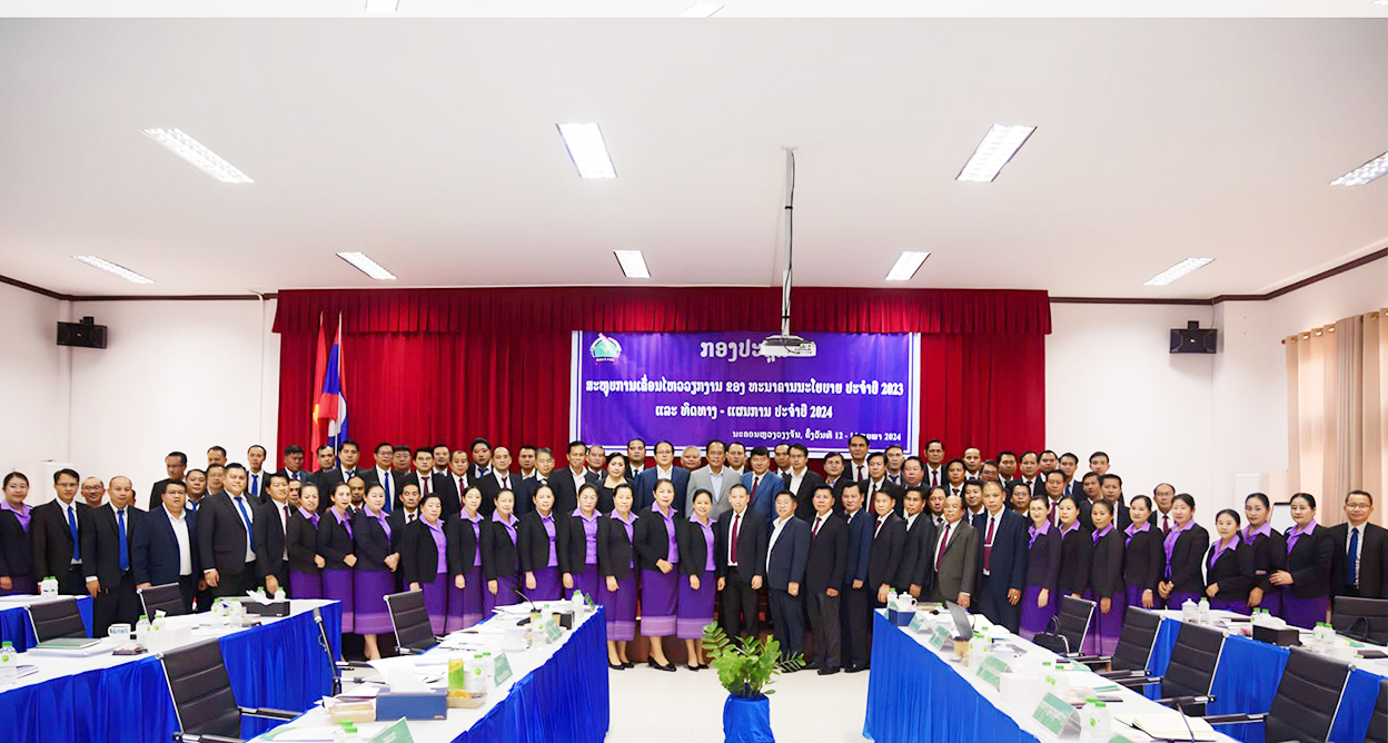 ທະນາຄານນະໂຍບາຍ (ທນບ) ໄດ້ຈັດຕັ້ງກອງປະຊຸມສະຫຼຸບການເຄື່ອນໄຫວວຽກງານຂອງ ທນບ ປະຈຳປີ 2023