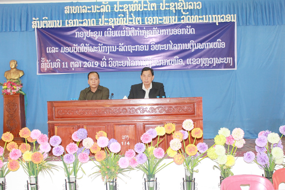 ວັນທີ 11 ຕຸລາ 2019 ທີ່ຫ້ອງປະຊຸມຂອງວິທະຍາໄລການເງິນພາກເໝືອ ແຂວງຫຼວງພະບາງ ໄດ້ເປີດກອງປະຊຸມເຜີຍແຜ່ນິຕິກຳ ກ່ຽວກັບການອອກບັດ ແລະມອບ ບັດໃຫ້ພະນັກງານ-ລັດຖະກອນໃຫ້ກຽດເຂົ້າຮ່ວມໂດຍທ່ານ ສຸວັນນີ ລັດຕະນະວົງ ຫົວໜ້າຄຸ້ມຄອງລັດຖະກອນກະຊວງພາຍໃນ, ທ່ານ ຫຼ້າ ສຸດາ