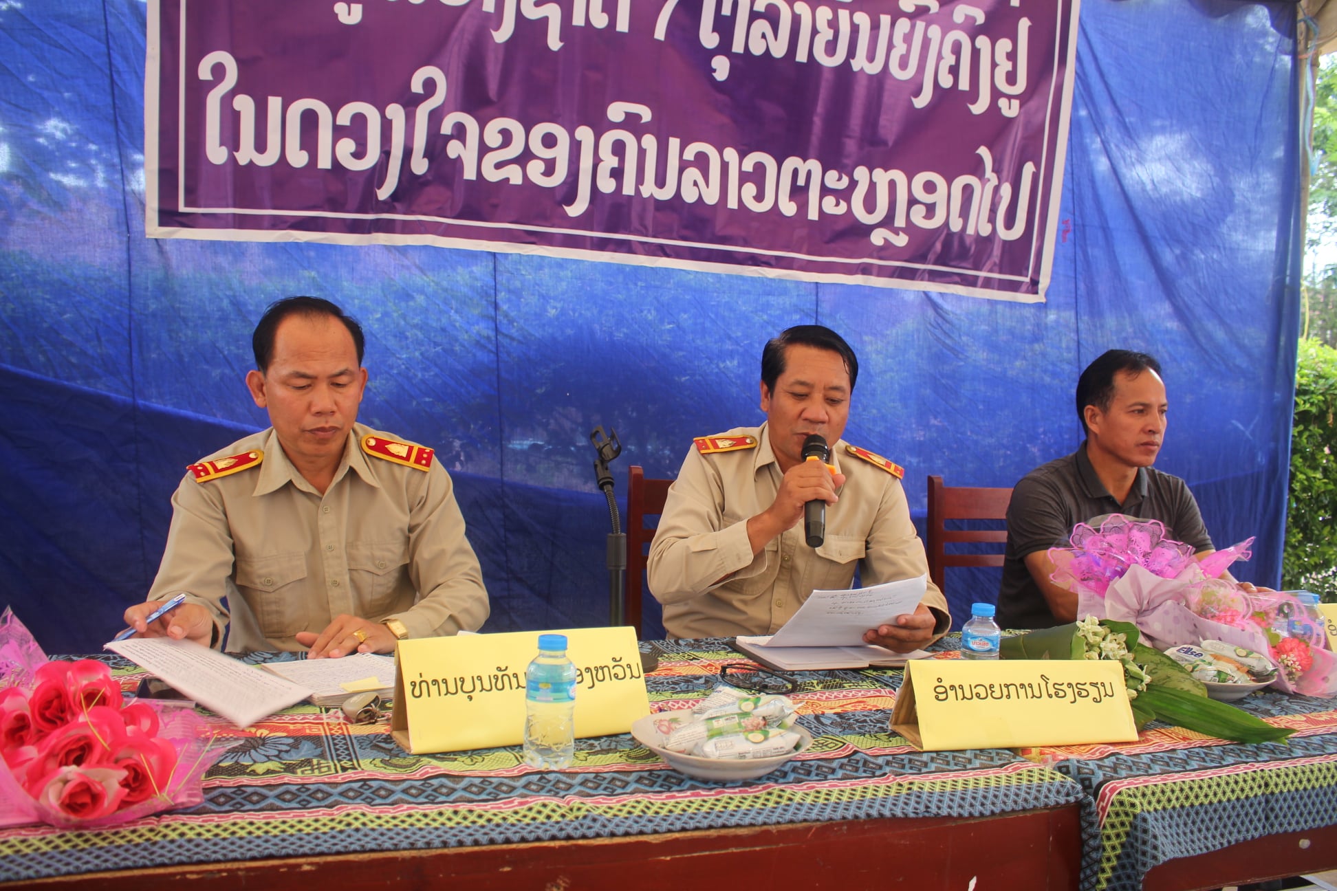 ທ້າຍອາທິດຜ່ານມານີ້, ທ່ານ ວອນ ເດີນດາວົງ ຮອງຫົວ ໜ້າຂະແໜງທ່ອງທ່ຽວພ້ອມຄະນະ ໄດ້ນຳເອົາຕຳລາຮຽນຈຳນວນ 84 ຫົວ ໄປມອບໃຫ້ໂຮງຮຽນປະຖົມ ບ້ານແສນວັງເມືອງ ແລະແຂວງ ສາລະວັນ ມູນຄ່າເກືອບ 2 ລ້ານກີບ, ຮັບໂດຍທ່ານ ສິດເພັດ ຍິງ ຍະສານ ຜູ້ອຳນວຍການໂຮງຮຽນປະຖົມພ້ອມ
