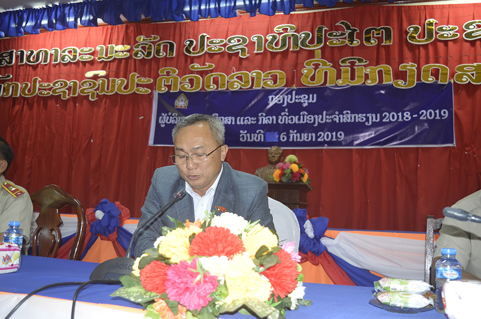 ວັນທີ 6 ກັນຍາ 2019 ເມືອງໝື່ນ ເປີດກອງປະຊຸມຜູ້ບໍລິ ຫານການສຶກສາ ແລະກີລາທົ່ວ ເມືອງປະຈໍາປີ 2018-2019 ຂຶ້ນຢ່າງເປັນທາງການທີ່ຫ້ອງວ່າການ ປົກຄອງເມືອງໃຫ້ກຽດເຂົ້າຂອງ ທ່ານ ພູວອນ ບຸນວິໄລ ເຈົ້າເມືອງ ໝື່ນ, ທ່ານ ລີຕົວ ລີເລ່ຍນູ ຫົວໜ້າຫ້ອງການສຶກສາທິການ ແລະກີລາເມືອງ, ມີ