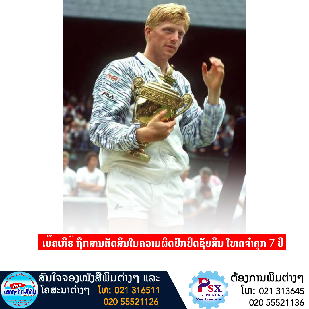 ບໍຣິສ ເບ໊ຄເກີຣ໌ ຕຳນານນັກເທນນິສ ຊາວເຢຍຣະມັນ ອາດຕ້ອງຮັບໂທດຈຳຄຸກສູງສຸດເຖິງ ປີ, ຫຼັງຈາກເມື່ອວັນທີ ເມສາ 2022 ນີ້ ສານນະຄອນລອນດອນຂອງປະເທດອັງກິດໄດ້ຕັດສິນວ່າເຂົາມີຄວາມຜິດໃນຄະດີທີ່ພົວພັນກັບການປົກປິດຊັບສິນເພື່ອເປັນບຸກຄົນລົ້ມລະລາຍເມື່ອປີ 2017.